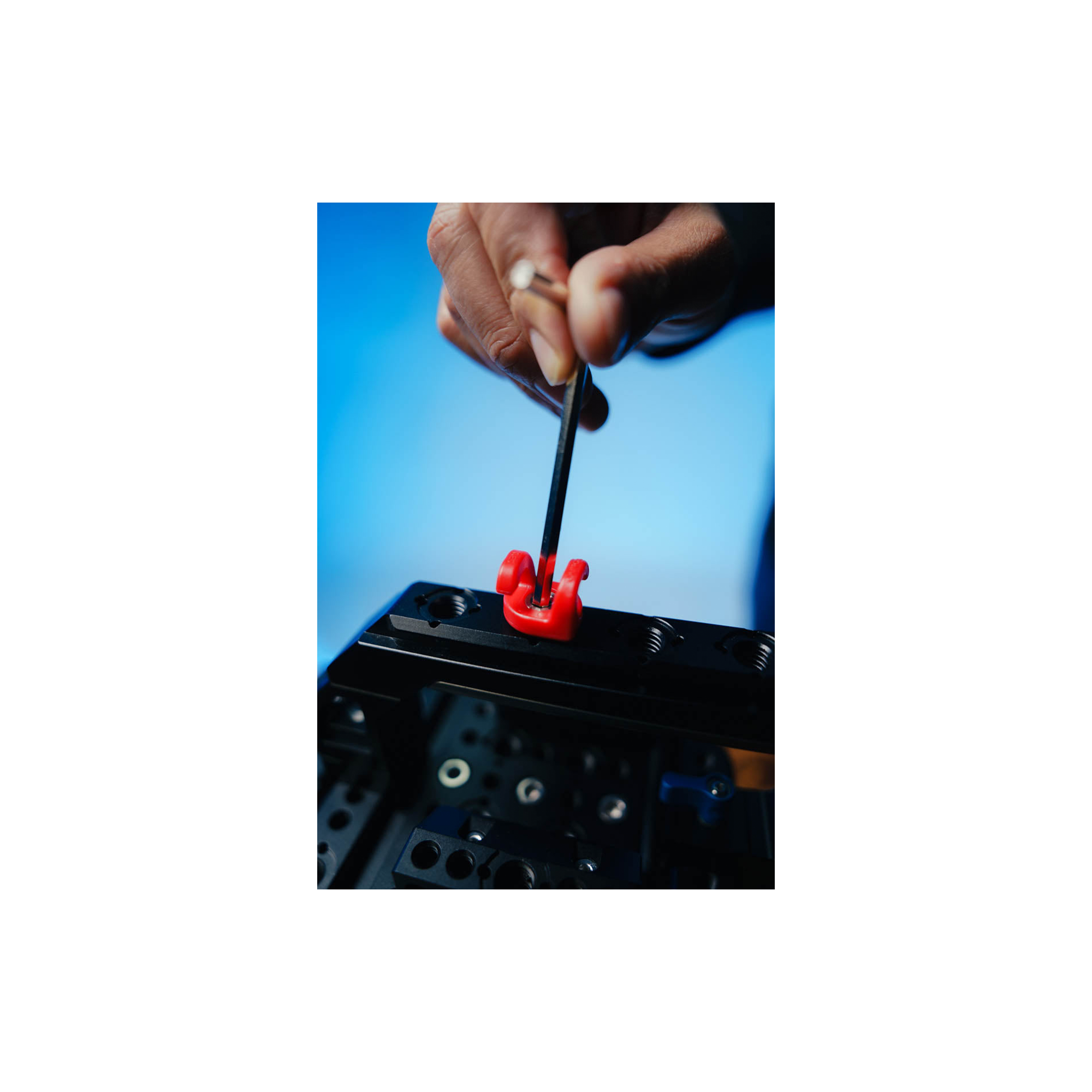 Compact but tough, each clip weighs just 9g and measures 24.3 × 19.3 × 20 mm. They come preloaded with a 3/8″-16 screw, so you can mount them wherever you need, on rods, cages, handles, or any rig point with threaded holes.
