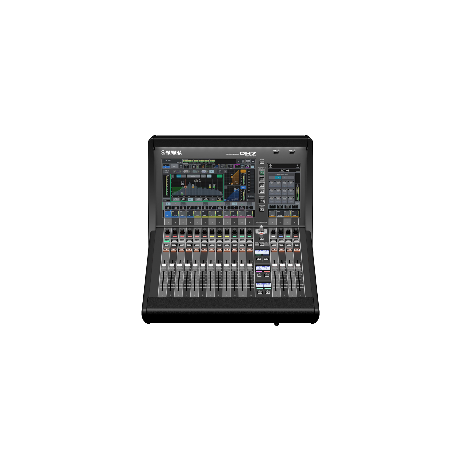 The DM7 Compact is a Dante-equipped versatile digital mixing console with unparalleled sound quality, ease of operation, and high reliability that make it perfect for a wide range of applications. The DM7 Compact is configured with 12 + 4 faders and a 1 x 12” + 1 x 7” multi-touch screen, and a rack-mountable with an optional RK1 rack mount kit.
